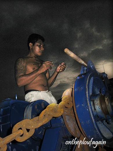 Journal de bord 03 mai 2014 – A la proue du bateau, Miouss le mécanicien 3 mai 2014 isa Laisser un commentaire Miouss, le mécanicien de l\’Ambai